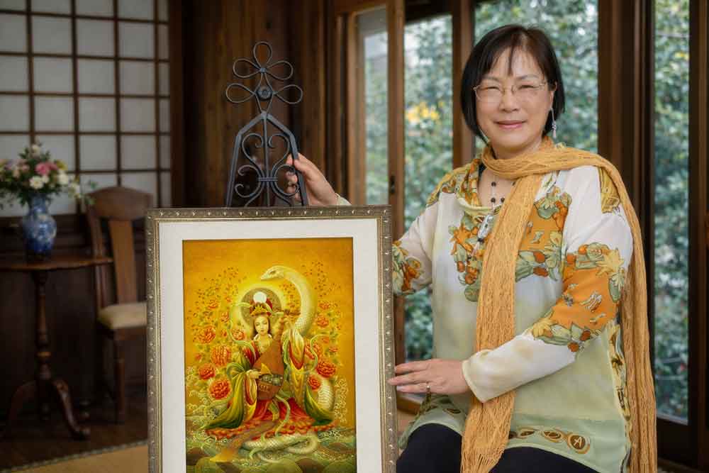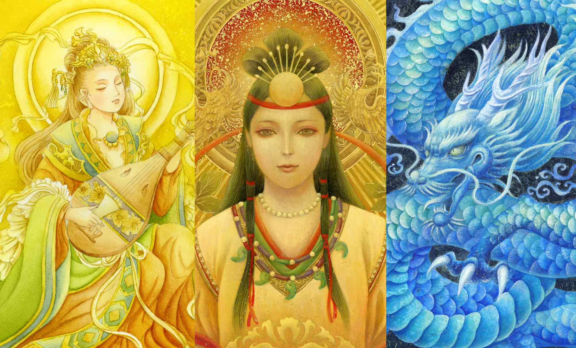 神仏画や龍神画を中心に、幻想的な風景や花などにも幅広く対応し、