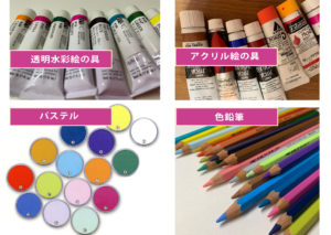 ・アクリル、水彩、パステル、色鉛筆 ほか